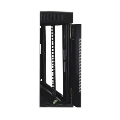 L'armoire murale SmartRack 9U à profil bas pour commutateurs est conçue pour abriter des équipements de rack 19 pouces aux normes EIA dans les armoires de câblage réseau, les magasins de détail, les salles de classe, les bureaux et autres endroits où l'espace au sol est limité et où l'équipement doit être sécurisé, organisé et à l'abri des regards. Construite en acier robuste avec une finition durable en poudre noire, l'armoire a une capacité de charge maximale de 200 livres (90,7 kilogrammes).Les panneaux latéraux et la porte avant se verrouillent solidement pour aider à prévenir les dommages, la falsification ou le vol. L'avant, le haut, le bas et les panneaux latéraux amovibles sont ventilés, ce qui permet à l'air de circuler librement et de garder l'équipement au frais. La porte avant réversible peut s'ouvrir à gauche ou à droite en faisant pivoter l'armoire de 180 degrés avant le montage. Le SRW9U est livré entièrement assemblé et prêt à être fixé au mur, ou à utiliser le kit de roulettes SRCASTER en option (vendu séparément) pour en faire un rack mobile. Les trous de montage carrés et filetés 12-24 ainsi que les emplacements de rack numérotés facilitent l'installation de l'équipement. Les rails de montage verticaux s'ajustent par incréments de 7/8 pouces pour accueillir des équipements d'une profondeur maximale de 16,5 pouces, tels que des commutateurs réseau et des panneaux de brassage.