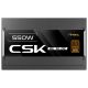 Antec CSK550DC. Puissance totale: 550 W, Tension d'entrée AC: 100 - 240 V, Fréquence d'entrée AC: 50/60 Hz. Connecteur de la carte mère: 24-pin ATX, Longueur du câble d'alimentation du périphérique (Molex): 150,500 mm, longueur du câble de puissance CPU: 65 cm. Utilité: PC, Facteur de forme de l'unité d'alimentation: ATX, Certification 80 PLUS: 80 PLUS Bronze. Couleur du produit: Noir, Diamètre du ventilateur: 12 cm, Emplacement du ventilateur: Haut. Câbles inclus: UC, PCIe, Peripheral (Molex), SATA