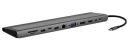 Station d'accueil 12 en 1. Tout ce dont vous avez besoin pour connecter votre ordinateur. Entrée USB Type-C. Sa technologie MultiStream Transport (MST) lui permet de gérer jusqu'à trois écrans supplémentaires en affichage bureau étendu. Branchée sur un PC portable, vous bénéficiez ainsi de 3 écrans indépendants pour optimiser votre confort et productivité. Détail des connexions : - 1 x HDMI 4K60HZ - 1 x DisplayPort 4K60HZ - 1 x VGA. Résolution avec 1 écran utilisant le port HDMI ou DisplayPort : 4k. Résolution avec deux et trois écrans : 2k. - 2 x USB-A 3.0. Transfert jusqu'à 5Gbps. - 1 x USB-C 3.0 (5 Gbps) - 1 x USB-A 2.0 (480 Mbps) - 1 x RJ45 1Gbps - 1 x 3.5 mm audio 4 pôles - 1 x Lecteur micro SD - 1 x lecteur SD - 1 x Type-C Power Delivery input.
