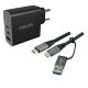 Chargeur pour ordinateur portable et différents appareils équipés de port USB-C. Prise en charge des modules PD3.0 et QC 4+ pour minimiser le temps de charge. Boîtier noir avec prise EU. Livré avec câble USB 3.2 Type C mâle/mâle Gen 2 10Gb 100W 5A Tressé+Adapt-2m