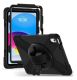 Cette coque renforcé vous permet de vous déplacer avec votre tablette à la main ou autour du cou à l’aide de sa poignée rotative 360° et sa bandoulière. Le pied de support de cette coque antichoc vous permet également de poser votre iPad en toute sécurité.