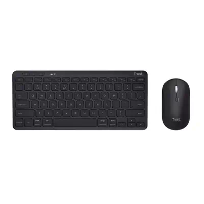 Trust Lyra. Facteur de forme du clavier: Mini. Style de clavier: Droit. Technologie de connectivité: Sans fil, Interface de l'appareil: RF sans fil + Bluetooth, Interrupteur à clé de clavier: Commutateur de touche « ciseaux », Disposition des touches du clavier: AZERTY, Utilisation recommandée: Bureau. Couleur du produit: Noir. Souris incluse